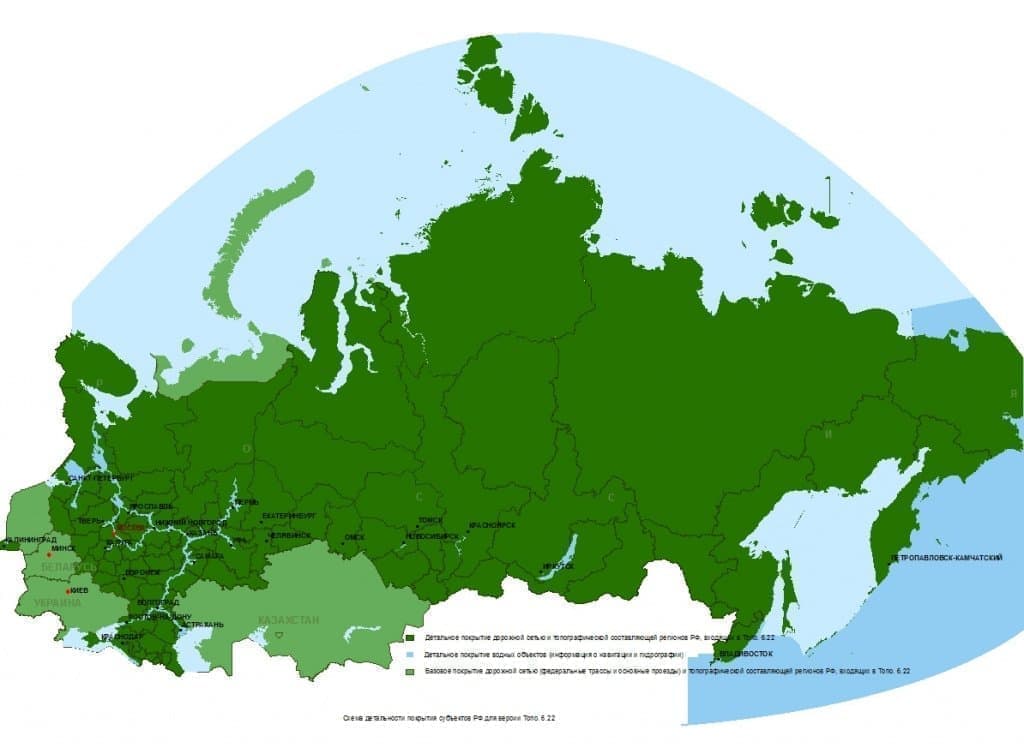 - обновлена гидрография, дорожная сеть и объекты POI